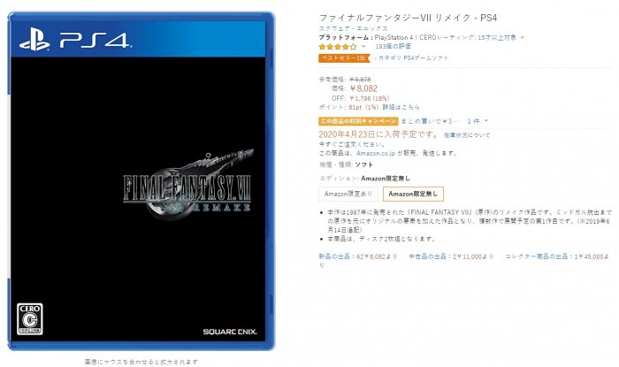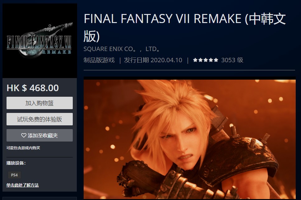 尽管目前,日亚上《最终幻想7:重制版》实体版有了8.2折的优惠,售价8082日元(人民币约528元),但是依旧比其他版本贵上不少,港版售价468港币(人民币约425元),台版售价1790元新台币(人民币约419元)。