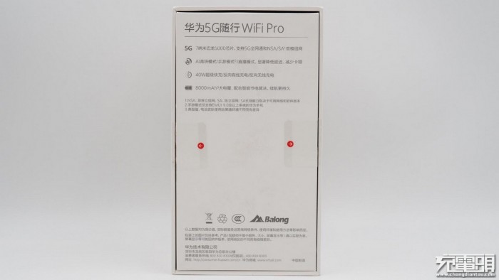 产品采用白色硬纸质包装盒,正面印有产品外观图以及华为5G随行WiFi Pro字样。