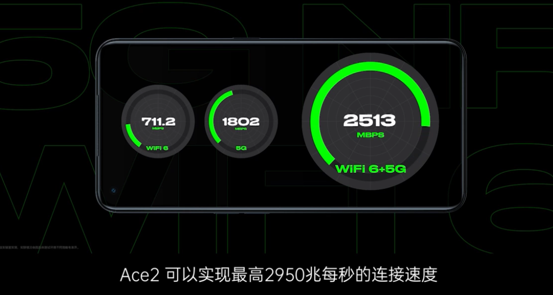 值得一提的是,Reno Ace 2手机还支持5G+WiFi 6双网下载,最高可以实现2950Mbps的网络速度。