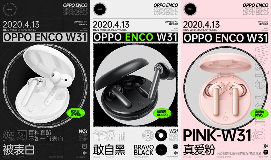 OPPO Enco W31售价299元,将于4月13日在OPPO官方商城、天猫、京东及苏宁易购电商平台正式上架,4月13日24点前购买立减10元,4月14日开启预定,4月20日10:00正式开售,真爱粉配色版本5月10日开售。新品上市期间购买可享受3期免息分期,与OPPO Ace2一起购买还可享受立减30元优惠,欲购从速!