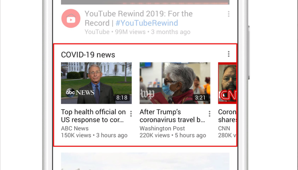 作为全球最大的视频网站,YouTube根据新闻和医学视频的“权威程度”对相关视频进行排序,这个过程中同时使用了人工和自动化工具。不过,YouTube并不公布每个视频的排序分数。对于提及新冠病毒的视频,YouTube会展示关联至卫生机构的信息面板,而莫汉表示该面板的浏览量已超过100亿次。此外,YouTube还在主页上增加了关于新冠病毒的标签。