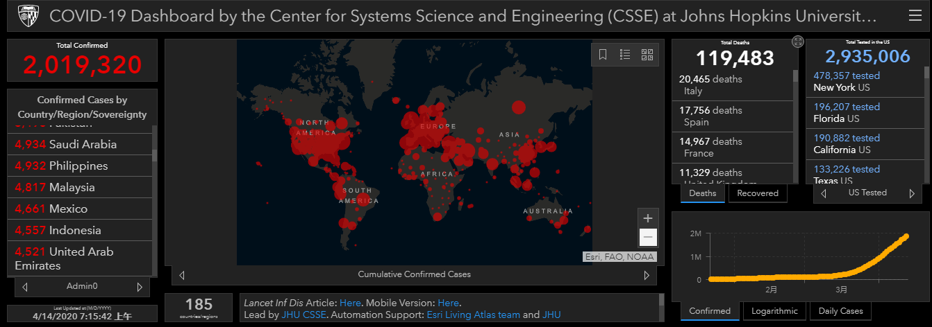根据约翰霍普金斯大学收集的数据,目前全世界有超过 200 多万人确诊感染新冠,超过 11 万人死亡,其中墨西哥确诊病例 4661,死亡 296 人。