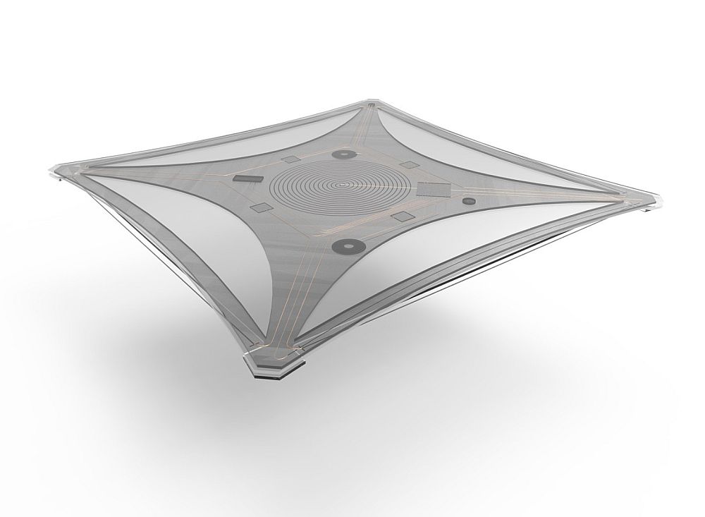 这套装置由德国弗劳恩霍夫协会加工机械和加工技术研究所研发,并和汽车零部件制造商Brose Fahrzeugteile合作生产的。当驾驶员或者乘客需要一个托盘的时候,只需要在仪表盘上挥个手就可以触发电流,让托盘的四个角就会翘起来。