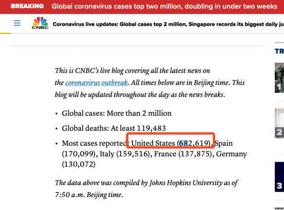 这意味着全球累计确诊病例数“突破200万”,CNBC新闻网、彭博社等外媒以及国内媒体援引转载。