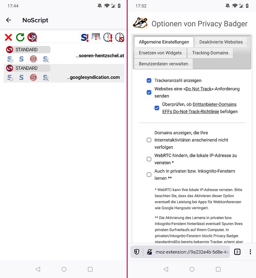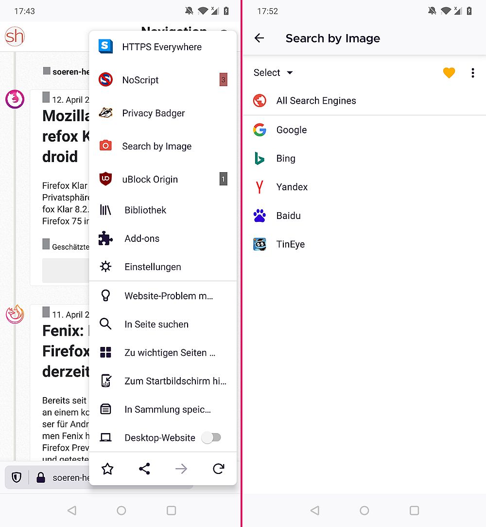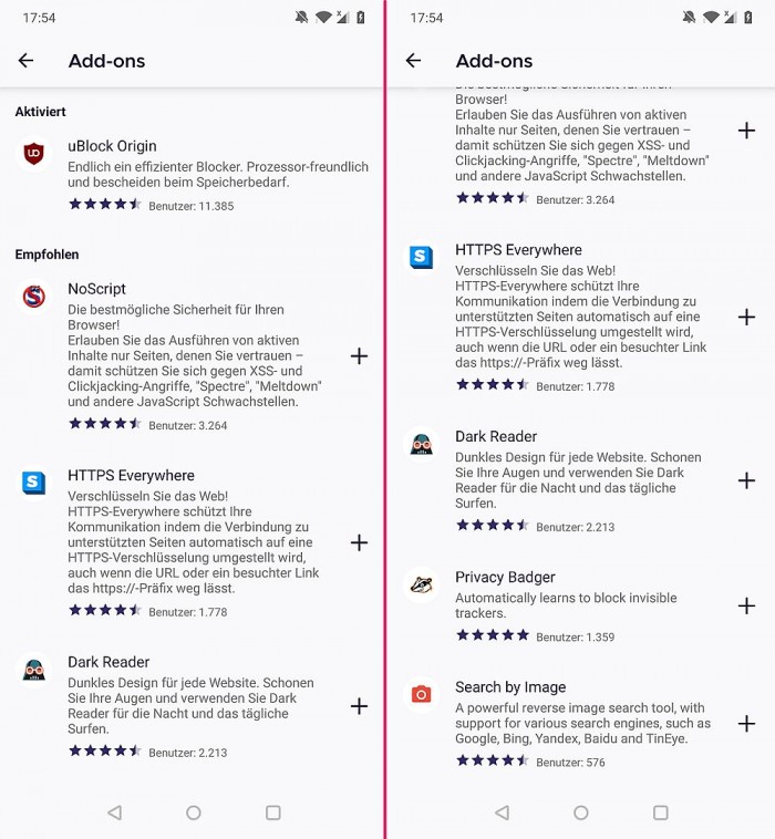 在此前的uBlock Origin之外,现在添加了NoScript、HTTPS Everywhere、Privacy Badger、Dark Reader和Search by Image的支持。