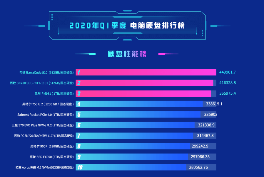 鲁大师今天公布了2020年第一季度硬盘市场统计报告,基于2020年1月1日至3月31日的测试数据而来,虽然不能完全代表实际市场的情况,但也有很高的参考价值。
