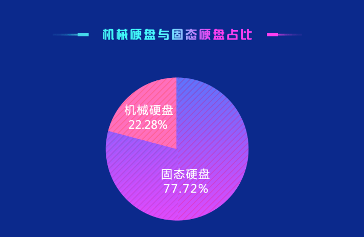 数据显示,SSD固态硬盘的市场占比已经高达77.72%,也就是差不多每五块硬盘里就有四块是SSD,对机械硬盘市场的侵蚀已经不可逆转。