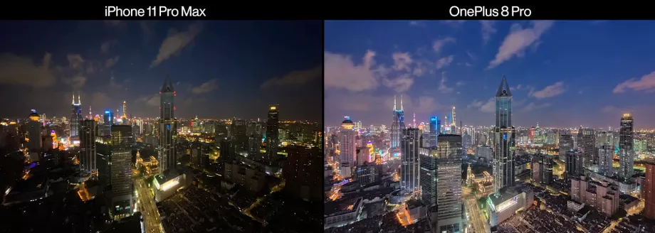 新的彩色滤镜相机的存在是为了支持光影效果和滤镜拍照,此外,OnePlus 8 Pro的夜间拍照效果也有所提升,该公司在今天的线上活动中甚至将iPhone 11 Pro和新的OnePlus 8 Pro的照片进行了对比。