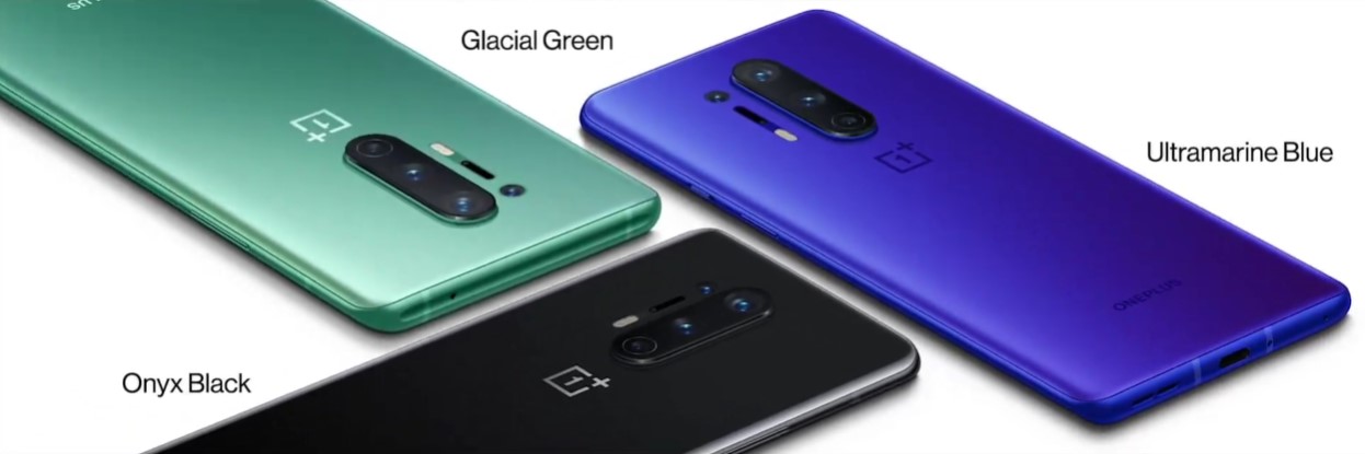 OnePlus 8 Pro将提供三种颜色的机身:缟玛瑙黑、群青蓝和冰川绿。