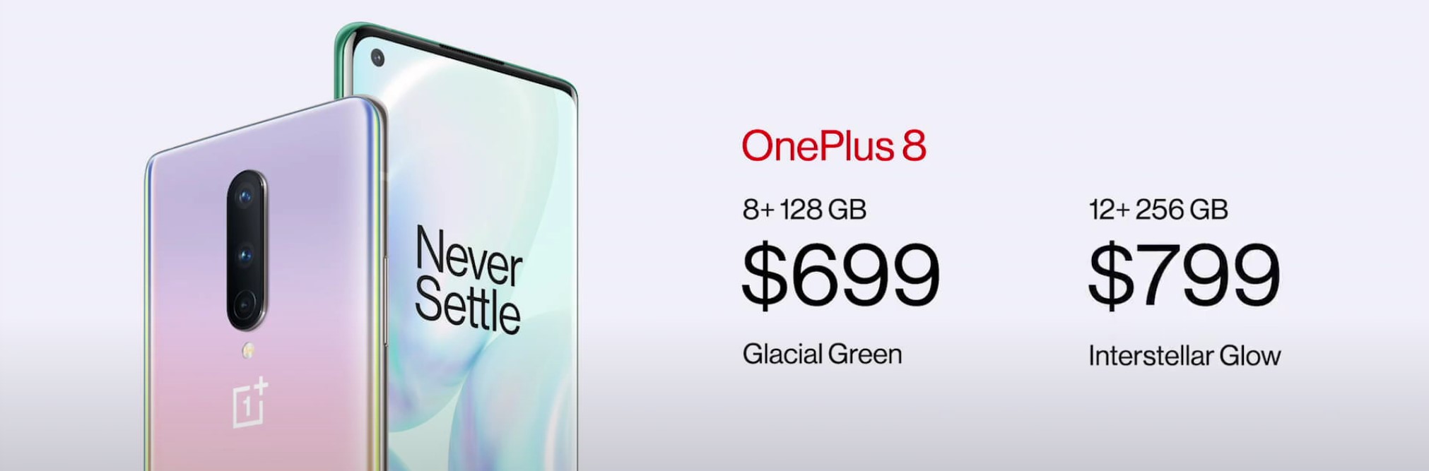 一加8 Pro的海外价格为899-999美元,而一加8则为699-799美元。
