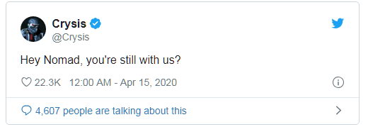 今日(4月15日)《孤岛危机》官方推特又发布新推文,引用了《孤岛危机1》开场对话中的“Hey Nomad, you’re still with us?”。这是官方在暗示将要重制《孤岛危机1》?