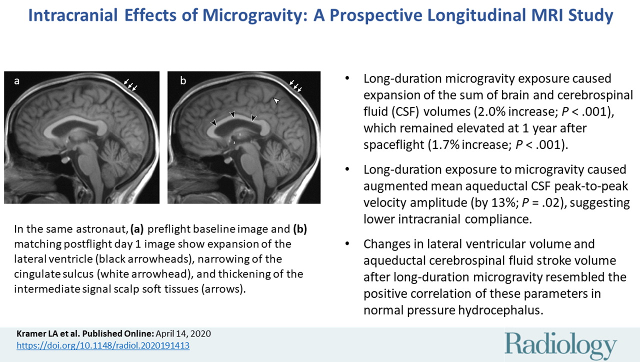 "如果我们能够更好地了解导致宇航员脑容积增大的机制,并开发出合适的对策,那么这些发现中的一些发现或许可以让正常压力性脑积水和其他相关疾病的患者受益。"Kramer说。
