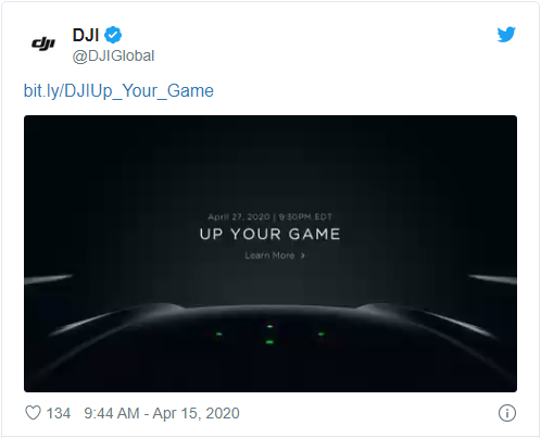 根据 @DJIGlobal 在 Twitter 上最新发布的预告片,该公司将与美东时间 4 月 27 日晚 9:30 发布新品。