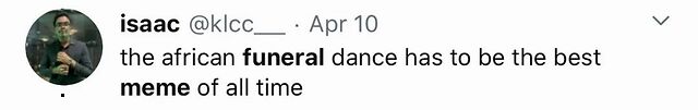如今抬棺舞爆火网络,其实与加纳的葬礼文化没有直接的关系,而是因为有人将这些视频与网络上作死的视频剪辑在一起,并配上魔性洗脑的音乐,形成葬礼与电音的戏剧碰撞。