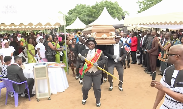 其实,“加纳抬棺小哥”的视频并非近期才有,它是来自于BBC非洲频道2017年对于加纳加纳共和国当地葬礼上一种抬棺舞的报道,人们会雇佣专业的抬棺队用这种形式送别亲人。