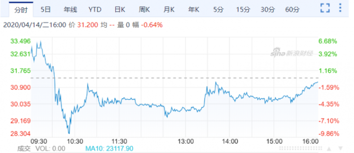 报告一经发布,跟谁学股价迅速大跌 10% ,市值蒸发近 50 亿元。最终收报 31.2 美元,跌 0.64% ,市值 74 亿美元。不过,这份做空报告对跟谁学的影响并不是很大,在这份报告发布后的几个小时内,跟谁学的股价出现了明显的上升趋势。