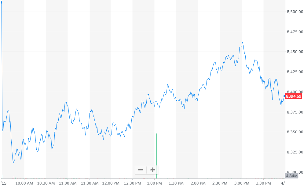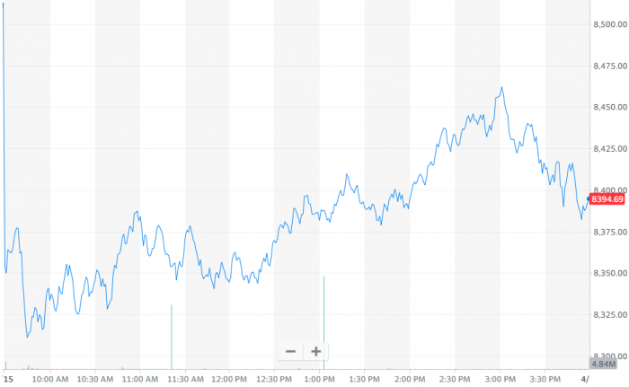 图:纳指跌1.44%,报收8393.18点