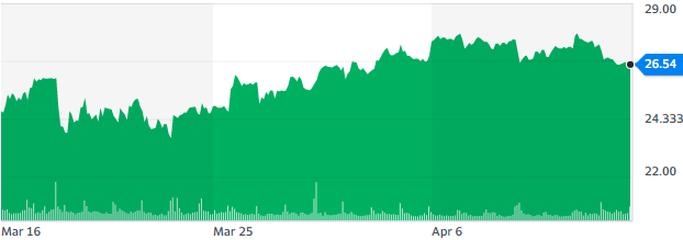 图:过去1个月中通股价上涨约4.2%