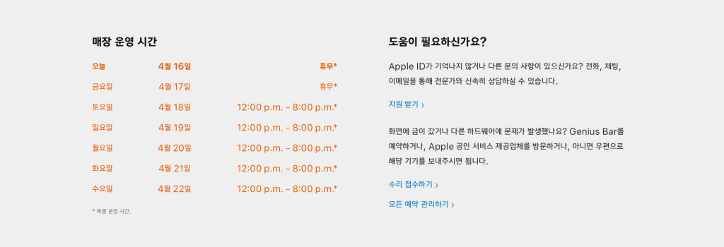 虽然韩国 Apple Store 开业了,但苹果还是建议用户网上购买产品,营业时间为 12:00 到 8:00 PM。