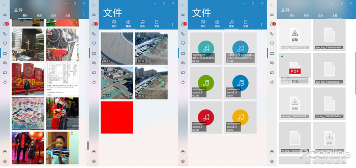 Dell Mobile Connect默认提供了“照片”、“视频”、“音乐”、“文档”四组标签,我们可以分门类地查看与管理手机上的文件,只是不支持子文件夹。默认情况下,这里显示的是一个文件清单,如果要查看或下载某个文件,需要点击一下图标上方的“获取”按钮,下载完成后才能拖拽到电脑上。