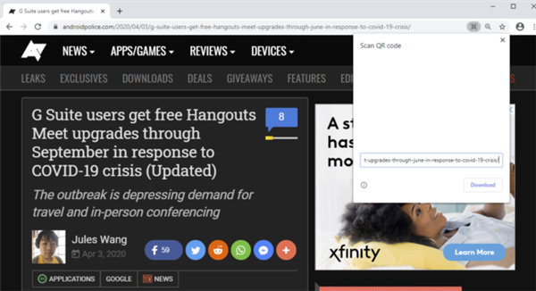生成后就可以使用各种二维码APP来读取Chrome的二维码跳转至相应网页,分享起来十分方便。