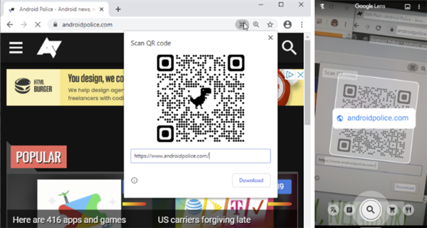 值得一提的是,Chrome的二维码中心是大家熟悉的那个断网小恐龙,看起来非常可爱,用户也可以直接在二维码的下方修改网址。