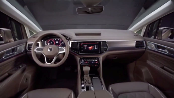 进入到车内,前排中控台依然是我们熟悉的大众式布局,不过大面积钢琴黑饰板、软质中控台、菱形包裹车门饰板、大尺寸液晶仪表和双侧电动侧滑门都提升了座舱的档次感。