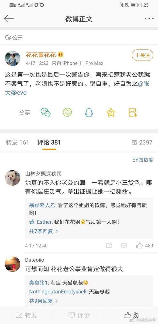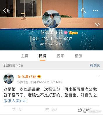 网红张大奕被疑似某电商总裁夫人喊话:再招惹我老公就不客气了