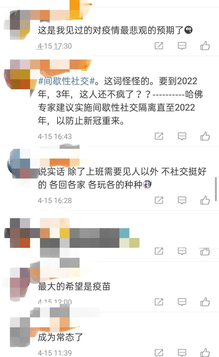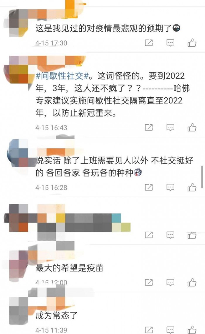 同时,该研究还指出,疫情可能会在呼吸道病毒流行的秋冬季出现,甚至是比当下更为严重的暴发。研究者基于数据建模提出预测,在缺少疫苗或其他有效治疗手段的前提下,疫情甚至最晚在 2025 年前还有复发的可能性。