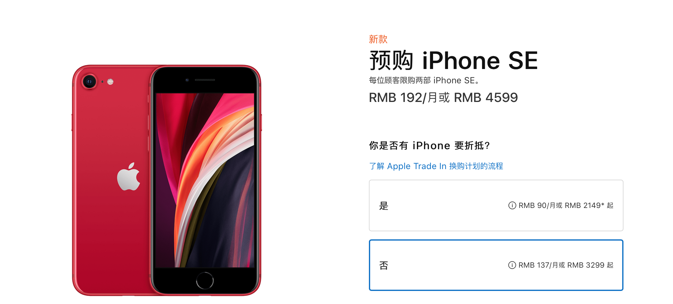 第二代 iPhone SE 已经于今晚 8 点在官网准时开启了预购,各个版本的 iPhone SE 库存充足,大多数订单均可以在 4 月 24 日首发当天送达。新款 iPhone SE 采用 4.7 英寸屏幕,单摄像头模组以及经典的 Touch ID 主屏幕按钮,有三个配色可选,分别为红色、白色和黑色。