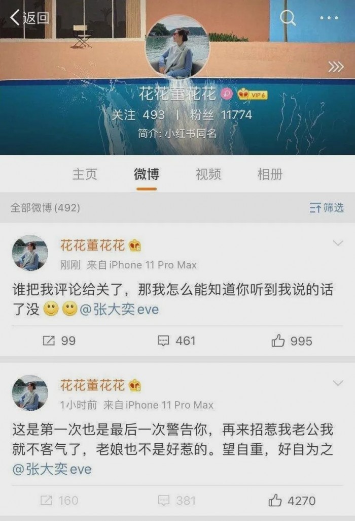 昨天下午,被誉为“初代网红”的张大奕被一个微博名为@花花董花花的博主开撕,称“这是第一次也是最后一次警告你,再来招惹我老公我就不客气了,老娘也不是好惹的。望自重,好自为之。”并在文末@了拥有千万微博粉丝的张大奕。