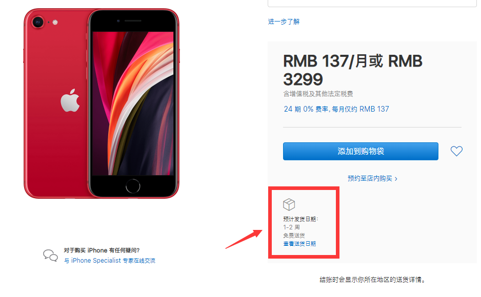 4月15日,全新iPhone SE正式上架开启预售,作为一款“最物超所值的iPhone”,尽管被许多人看衰,但它上线后就受到了消费者热捧,部分热门型号(比如红色全系)就屡屡售罄。4月19日,据苹果官网显示,红色iPhone SE 64GB/128GB/256GB发货日期全部显示1-2周,而黑白两色则是4-6个工作日。
