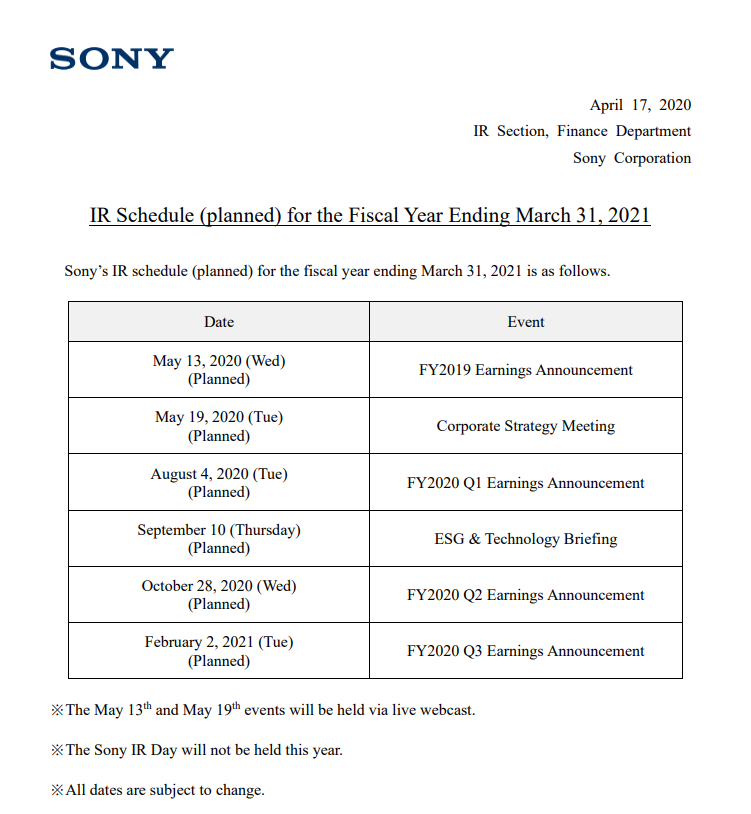 5月19日举办的“集团战略会议”可能是一个重头戏。由于疫情关系,索尼今年不会举办一年一次的投资人关系日(IR Day),索尼可能会使用这次的战略会议作为一个跳板,向投资人和玩家提供次世代主机的重要细节。