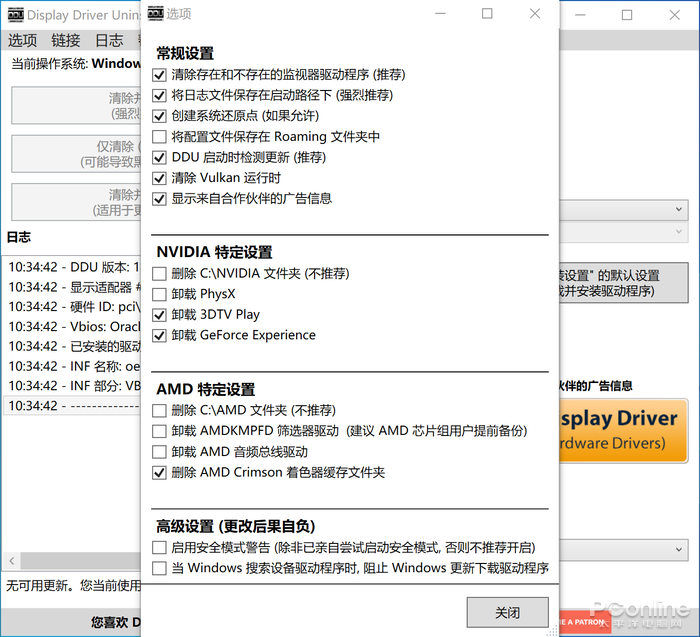 DDU开启会弹出一些设置,例如是否创建系统还原点、是否卸载某些组件等等,而且这个设置还对N卡和A卡做了不同的选项,这点还是相当不错的。