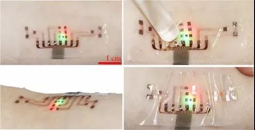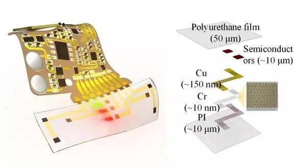 针对这些问题,冯雪课题组发展了基于光学原理的血压监测方案,利用生物兼容性材料制备出可与人体自然共形贴附的类皮肤光电子器件。这种柔性电子系统可通过测量血液对不同波长的光波吸收情况,判断血液的容积和流速变化,从而测量出人体的血压变化。