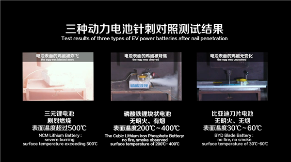 与此同时,刀片电池体积比能量密度提升了50%,使得比亚迪汉NEDC续航里程达到605公里。寿命方面,刀片电池可以充放电3000次以上,装配车型最大行驶里程可达约120万公里。