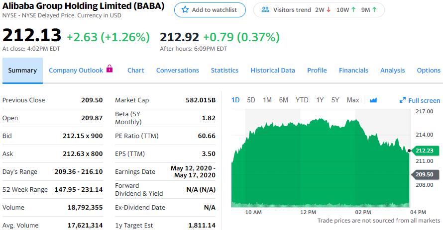阿里巴巴加大对阿里云投资力度,股价上涨1.26%