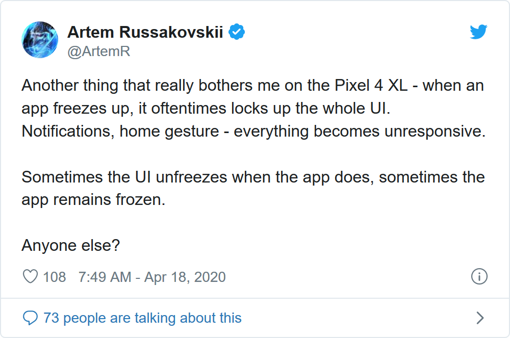 4月21日消息,据Android Police报道,近期不少人反映谷歌Pixel手机在运行部分APP时经常出现无响应的情况。报道指出,这是Android 10系统存在的Bug,该Bug不仅影响了谷歌Pixel设备,其它手机品牌也受到了不同程度的影响。