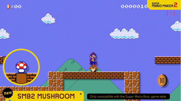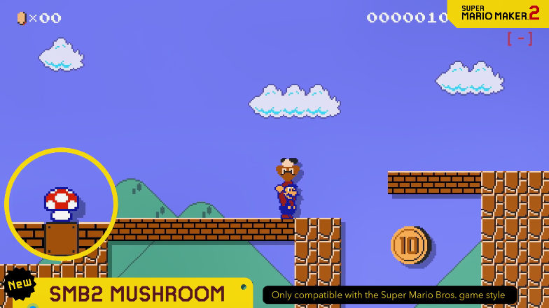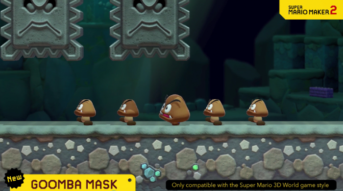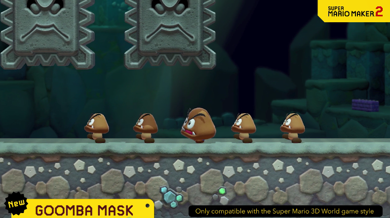 从此次公开的影像内容来看,《超级马里奥制造2》3.0版本将加入新蘑菇效果:可以让角色踩在怪物身上,还可以将怪物直接扔走。