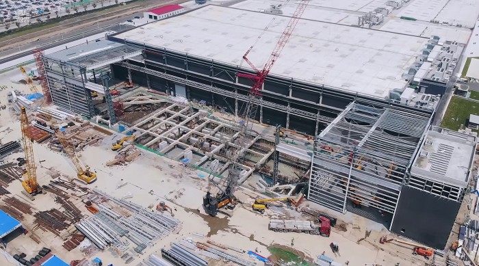 图片显示,车身冲压车间的建设似乎涉及到深挖作业,这表明该地区将容纳新的大型机器,或者至少比现有Model 3生产线上使用的车身冲压机更大的机器。