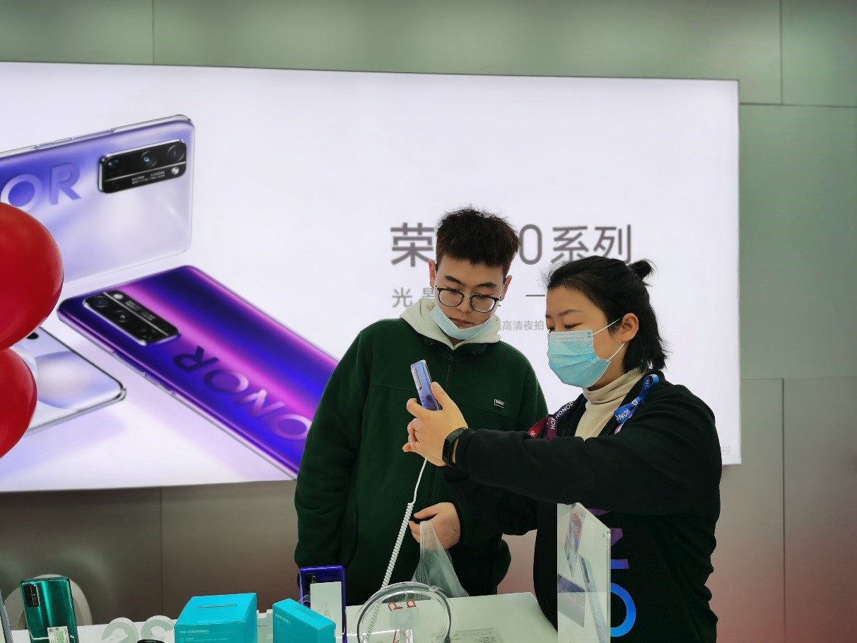 4 月 21日上午 10 点 08 分,潮流影像旗舰荣耀30系列正式开售,根据荣耀手机官方数据,开售1分钟线上全平台销售额就突破了3亿。而在荣耀线下门店,用户也排起了长队购买,线上线下销售火爆。