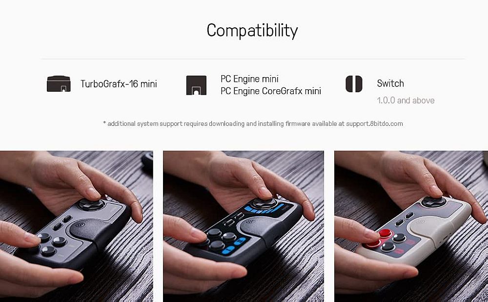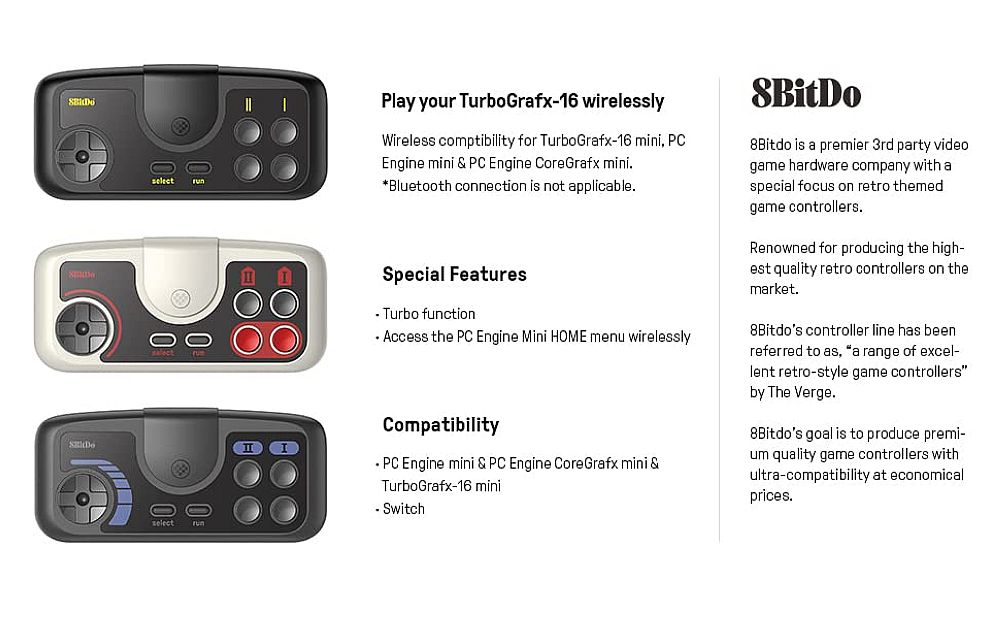 目前八位堂已经放出了新款TG16型号的预购,并表示为即将到来的三个迷你游戏主机均做了适配,提供无延迟的无线体验。八位堂以其复古风格的游戏控制器而闻名,包括老式硬件、复古迷你机,甚至是现代游戏机的控制器。