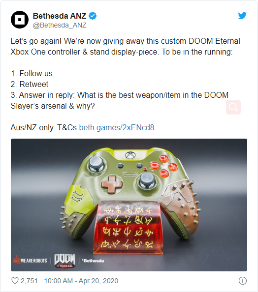 不想花钱的朋友,不妨参与贝塞斯达的澳大利亚和新西兰区域的社交媒体账号发起的抽奖活动(关注、转发并回答问题)。
