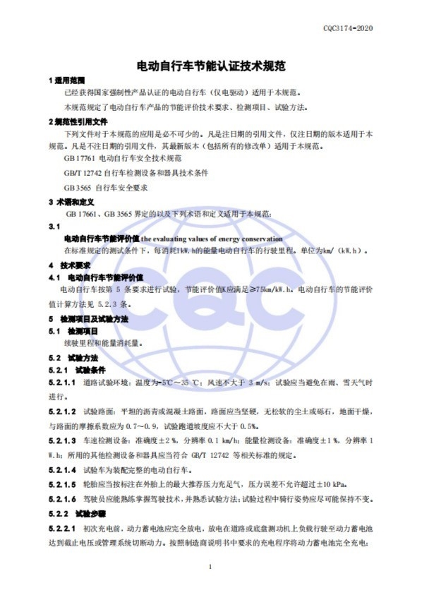 近日,中国质量认证中心权威发布的《电动自行车节能认证技术规范》正式启用,让电动自行车节能认证有了一个标准答案!