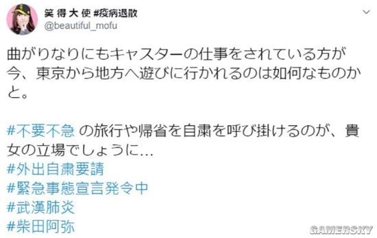 “虽然你只是半路出家但终究已经是新闻主播了,在政府呼吁人们避免旅行、回老家的这个时候,你这种立场的人还离开东京跑去其他县市玩,不知道其中的严重性吗……”