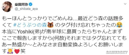 “太冒失了真抱歉啦……最近聊太多动物森友会都忘记附上『#动物森友会』的标签了,如果我弟真的在南半球买了一座岛会再跟大家报告”