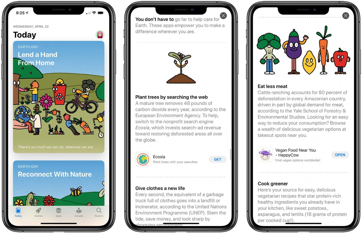 在App Store的Today版块中上线了数个跟地球日相关的内容。