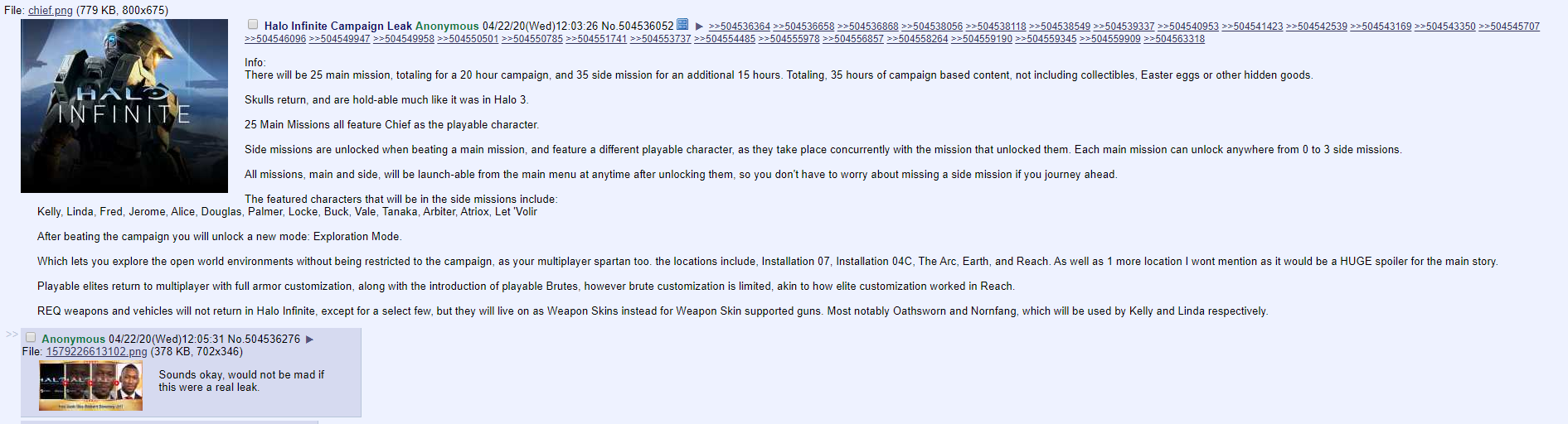 《光环:无限》作为这个微软经典系列的新作,同时又是次世代主机首作,自然吸引了无数粉丝的关注。虽然343工作室依旧对游戏的内容守口如瓶,还是不停有爆料传出,而近日源自4chan的一则爆料开始发酵,光环粉丝们称虽然其陈述的游戏剧情显得有些夸张,但关于游戏的玩法和规格的描述还是有一定可信度。