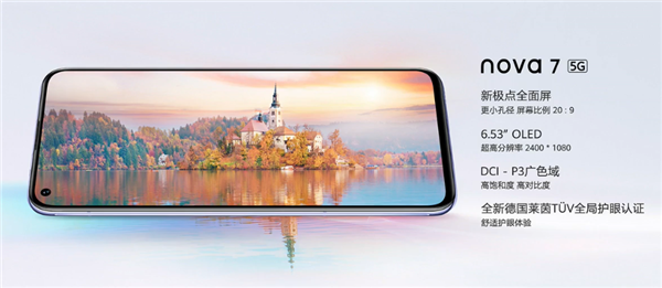 屏幕方面,nova7手机为20:、9比例,分辨率2400x1080,支持DCI-P3色域,支持德国莱茵全局护眼。