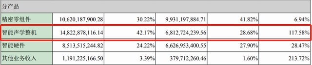 据歌尔股份2019年年报显示,从2018年到2019年,代表耳机的“智能声学”收入增长了117%,首次超过“精密零组件”,成为这家声学巨头为收入贡献最多的一项业务。